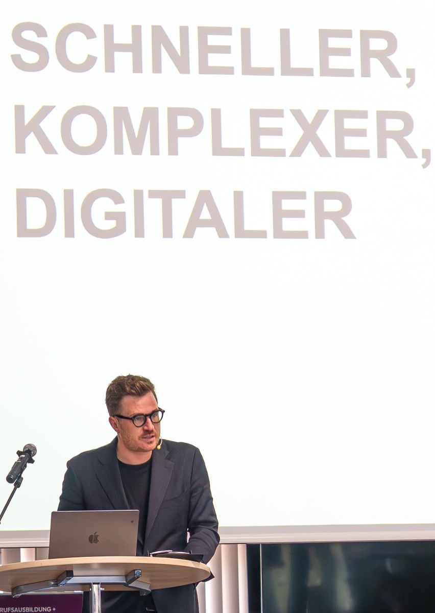 Stargast der Veranstaltung war der Zukunkfts- und Innovationsforsche Dr. Maximilian Lude, der mit einem packenden Vortrag darstellte, was uns in der Welt der KI erwarten wird.