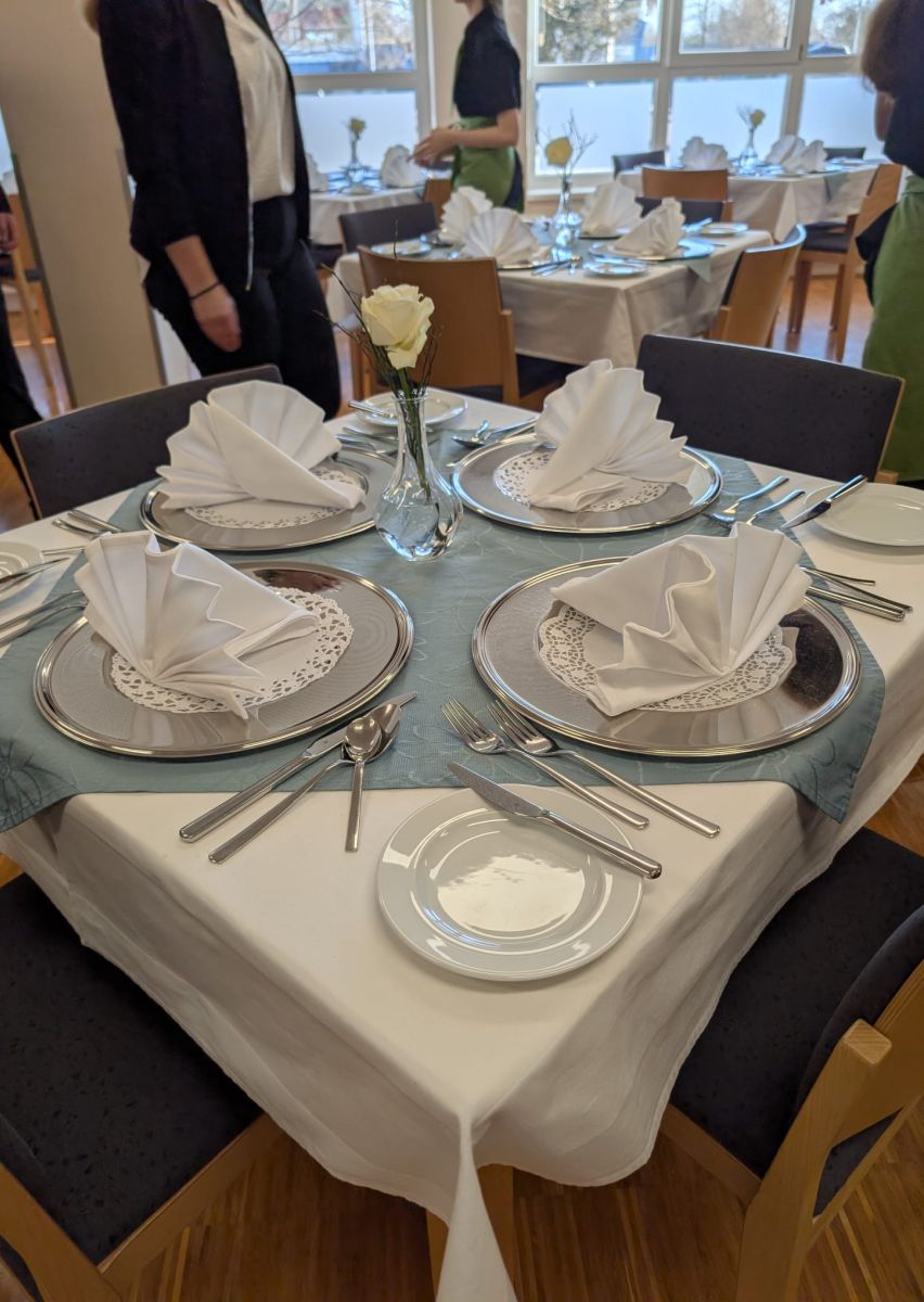 Der Workshop setzte sich aus einem theoretischen Teil mit wertvollen Informationen zu Tischkultur und Umgangsformen sowie einem praxisnahen Teil zusammen. In einer realitätsnahen Simulation eines Geschäftsessens konnten die Schüler:innen das Erlernte direkt anwenden.